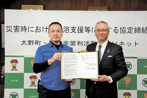 大野町とVネット災害時支援で協定 入浴設備や送風機提供 政治・行政 2026年1月15日 05:00 協定書に署名した川上哲也理事長(左)と宇佐美晃三町長=大野町役場 大野町は13日、全国の被災地で支... 残り258文字(全文:275文字) この記事をお読みいただくには「デジタルプラン」または「宅配+デジタルプラン」の会員登録が必要です。無料会員の方はログインしてマイページからコース変更してください。デジタルプランまたは宅配+デジタルプランをご登録中の方はログインしてください。 岐阜新聞デジタル会員に登録すると 無料会員向け記事が読める ニュースレターで最新情報が受け取れる デジタルプラン、宅配+デジタルプランなら Webオリジナルコンテンツが読める 紙面ビューアが読める チケットの先行発売に参加できる お得なクーポンが使える 新規登録ページ ログインページ トップ 岐阜のニュース 政治・行政 大野町とVネット災害時支援で協定 入浴設備や送風機提供 関連記事 【岐阜県】地図で見るインフルエンザ情報 迫る衆院選…選管、2月決戦に悲鳴 岐阜市2週連続、大野町は同日選も 名阪近鉄バス「にしみのライナー」ペイペイ決済可能に 20日から 用水路に自転車転落、大野町で男性死亡 岐阜県内今年初の交通死亡事故 火災損害3819万円 昨年まとめ、発生23件 揖斐郡消防 災害時、復旧に全力 新東建設が新年互礼会 おすすめ記事 和装を照らす灯に願い 飛騨市古川町で伝統の「三寺まいり」 岐阜市で1億8千万円被害の特殊詐欺事件、30代容疑者逮捕 岐阜4区、加藤県議を擁立へ 次期衆院選で自民 岐阜5区、国民民主が吉田氏擁立へ 次期衆院選、多治見市議