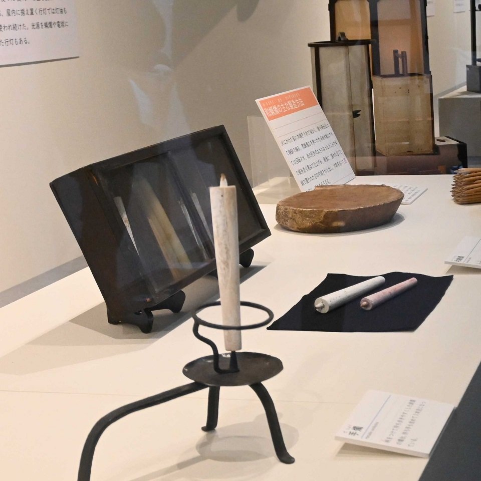 江戸から昭和までの明かりの変遷を紹介した冬季特別展「陰影の妙味 飛騨の夜を照らすあかり」が、高山市上一之町の飛騨高山まちの博物館で開かれている。かつて人々の暮らしを照らしたろうそくやぼんぼり、それにまつわる古文書などの資料がずらりと並ぶ。3月22日まで。