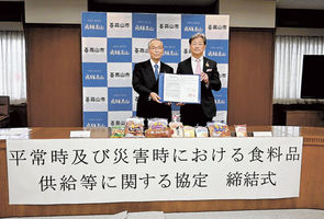 災害時に食料品供給 フジパンと高山市が協定 社会 2026年1月18日 05:00 協定を結んだ田中明市長(右)と安田智彦社長=高山市役所 高山市は、製パン業大手のフジパン... 残り325文字(全文:342文字) この記事をお読みいただくには「デジタルプラン」または「宅配+デジタルプラン」の会員登録が必要です。無料会員の方はログインしてマイページからコース変更してください。デジタルプランまたは宅配+デジタルプランをご登録中の方はログインしてください。 岐阜新聞デジタル会員に登録すると 無料会員向け記事が読める ニュースレターで最新情報が受け取れる デジタルプラン、宅配+デジタルプランなら Webオリジナルコンテンツが読める 紙面ビューアが読める チケットの先行発売に参加できる お得なクーポンが使える 新規登録ページ ログインページ トップ 岐阜のニュース 社会 災害時に食料品供給 フジパンと高山市が協定 関連記事 特大絵馬、受験生後押し 高山信金、飛騨天満宮に奉納 斐太高生が手がける 高山市の旧デイサービス施設で火災、男性死亡 高山の5人死傷放火、被告「いらいらした」 岐阜地裁公判 身近な道具で縁起物表現 高山市で新春飾り物展 土のう積み「重くて大変」 日新小児童、災害対策学ぶ 揖斐川 正しい救助法レクチャー HIRO学園で出前授業 おすすめ記事 衆院選へ早くも論戦、岐阜3区では現職全員地元入り 解散方針後、初の週末 岐阜1区、共産が波多野氏擁立へ 次期衆院選、党地区委員長代理 大正・昭和の「モード」とは 岐阜県美術館で特別展開催中、学芸員が解説 スゥープス3連勝 最終Q猛攻、3P8本で再逆転 バスケBリーグB3