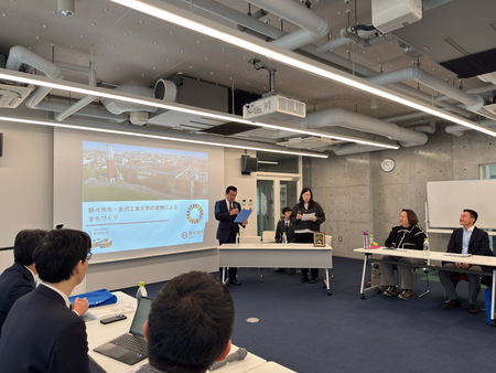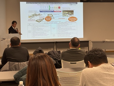 午後は、白山麓キャンパスへ移動し、金沢工業大学の併設校である国際高等専門学校の取り組みについて鹿田正昭校長が紹介した後、自然環境を活かした実践的・体験型学習の現場を視察しました。スマートテクノロジー研究施設や国際連携教育の紹介に加え、地元住民との意見交換会では、コンポストの取り組みや地域資源活用に関する意見が交わされました。