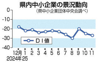 中小景況感が悪化 県内11月動向、マイナス27 経済 2026年1月20日 05:00 県中小企業団体中央会がまとめた県... 残り395文字(全文:412文字) この記事をお読みいただくには「デジタルプラン」または「宅配+デジタルプラン」の会員登録が必要です。無料会員の方はログインしてマイページからコース変更してください。デジタルプランまたは宅配+デジタルプランをご登録中の方はログインしてください。 岐阜新聞デジタル会員に登録すると 無料会員向け記事が読める ニュースレターで最新情報が受け取れる デジタルプラン、宅配+デジタルプランなら Webオリジナルコンテンツが読める 紙面ビューアが読める チケットの先行発売に参加できる お得なクーポンが使える 新規登録ページ ログインページ トップ 岐阜のニュース 経済 中小景況感が悪化 県内11月動向、マイナス27 関連記事 「新たな一歩踏み出す」 可児JC 新理事長が決意 新年式典 TACT研究会が例会と賀詞交歓会 26年の経済を展望 法人向けの緊急便に新幹線活用 セイノースーパーエクスプレス、全国JR系と提携 岐阜信金、アプリに通帳機能を追加 定期預金作成機能も 【ぎふの針路2026 ④】県商工会連合会長 坂井田良道氏 小規模事業者支援に力 にぎわい創出へ 会員ら飛躍誓う 加納十六会が総会 おすすめ記事 堀島行真、村瀬心椛ら岐阜県勢4人がミラノ五輪へ 全日本スキー連盟が代表52人発表 鍛治舎巧さん「No.1への道」 メンタルトレーニング~百折不撓の心を創る~〈習熟期(3年)〉集中力を高める=後編= 岐阜県内、21日から大雪の恐れ 美濃の平地でも降雪予想【情報更新】 岐阜県民、解散「なぜ今」 経済、外交には共感も