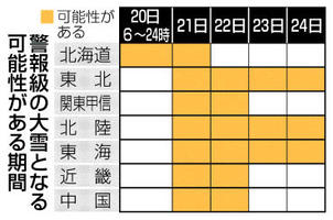県内大雪恐れ 警報級、あすから25日 2026年1月20日 05:00 冬型の気圧配置となり、強い寒気が... 残り196文字(全文:213文字) この記事をお読みいただくには「デジタルプラン」または「宅配+デジタルプラン」の会員登録が必要です。無料会員の方はログインしてマイページからコース変更してください。デジタルプランまたは宅配+デジタルプランをご登録中の方はログインしてください。 岐阜新聞デジタル会員に登録すると 無料会員向け記事が読める ニュースレターで最新情報が受け取れる デジタルプラン、宅配+デジタルプランなら Webオリジナルコンテンツが読める 紙面ビューアが読める チケットの先行発売に参加できる お得なクーポンが使える 新規登録ページ ログインページ トップ 岐阜のニュース 県内大雪恐れ 警報級、あすから25日 関連記事 ’26ぎふ衆院選 急浮上解散 ポスターやら投票用紙やら… 印刷会社も超短期戦 背中に刺し傷 男性死亡 姫路のマンション、殺人で捜査 道案内頼み「お礼」で接近 連絡先は明かさず 阿蘇山遊覧ヘリ不明 火口に墜落? 台湾客ら3人搭乗 大寒に泳ぐ 郡上本染 鯉のぼり ヴァレンティノさん死去 93歳 高級ブランド創業者 おすすめ記事 衆院選の立候補説明会、岐阜県内20陣営が出席 連合岐阜、衆院選各選挙区での支援方針決める 堀島行真、村瀬心椛ら岐阜県勢4人がミラノ五輪へ 全日本スキー連盟が代表52人発表 鯉のぼり、真冬の清流を泳ぐ 伝統工芸・郡上本染の「寒ざらし」
