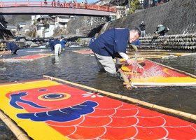 鯉のぼり、真冬の清流を泳ぐ 伝統工芸・郡上本染の「寒ざらし」 社会 2026年1月20日 18:13 冷水にさらしてのりを落とす「鯉のぼり寒ざらし」作業=20日午後1時、郡上市八幡町、小駄良川(撮影・坂井萌香) 郡上八幡の冬の風物詩、郡上本染の「鯉(こい)のぼり寒ざらし」が大寒の20日、郡上市八幡町の小駄良川であり、色鮮やかなこいのぼりが優雅に泳いでいるかのように清流を彩った。... 全文:376文字 この記事をお読みいただくには「デジタルプラン」または「宅配+デジタルプラン」の会員登録が必要です。無料会員の方はログインしてマイページからコース変更してください。デジタルプランまたは宅配+デジタルプランをご登録中の方はログインしてください。 岐阜新聞デジタル会員に登録すると 無料会員向け記事が読める ニュースレターで最新情報が受け取れる デジタルプラン、宅配+デジタルプランなら Webオリジナルコンテンツが読める 紙面ビューアが読める チケットの先行発売に参加できる お得なクーポンが使える 新規登録ページ ログインページ トップ 岐阜のニュース 社会 鯉のぼり、真冬の清流を泳ぐ 伝統工芸・郡上本染の「寒ざらし」 関連記事 大きな紙に全力の一字 児童が「ジャンボ書き初め」 郡上市 水面 冬の幻想 郡上市 鯉のぼり寒ざらしライトアップ 喫煙スペースに車突っ込み女性重傷 郡上市のパチンコ店駐車場、70代運転 和良駐在所の改築工事完了 郡上署が内覧会 全国バトントワーリング金賞 尾村さん(関商工高)市長に喜び 郡上市 「郡上本染」伝統に触れる 八幡小児童がこいのぼり制作体験 職人の指導受け「のり置き」挑戦 おすすめ記事 衆院選の立候補説明会、岐阜県内20陣営が出席 連合岐阜、衆院選各選挙区での支援方針決める 堀島行真、村瀬心椛ら岐阜県勢4人がミラノ五輪へ 全日本スキー連盟が代表52人発表 鯉のぼり、真冬の清流を泳ぐ 伝統工芸・郡上本染の「寒ざらし」