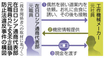 ロシア元在日職員スパイ容疑 書類送検 メーカー機密入手か 工作機械元社員から 2026年1月21日 05:00 首都圏の工作機械メーカーから機密... 残り639文字(全文:656文字) この記事をお読みいただくには「デジタルプラン」または「宅配+デジタルプラン」の会員登録が必要です。無料会員の方はログインしてマイページからコース変更してください。デジタルプランまたは宅配+デジタルプランをご登録中の方はログインしてください。 岐阜新聞デジタル会員に登録すると 無料会員向け記事が読める ニュースレターで最新情報が受け取れる デジタルプラン、宅配+デジタルプランなら Webオリジナルコンテンツが読める 紙面ビューアが読める チケットの先行発売に参加できる お得なクーポンが使える 新規登録ページ ログインページ トップ 岐阜のニュース ロシア元在日職員スパイ容疑 書類送検 メーカー機密入手か 工作機械元社員から 関連記事 ’26ぎふ衆院選 急浮上解散 ポスターやら投票用紙やら… 印刷会社も超短期戦 背中に刺し傷 男性死亡 姫路のマンション、殺人で捜査 道案内頼み「お礼」で接近 連絡先は明かさず 阿蘇山遊覧ヘリ不明 火口に墜落? 台湾客ら3人搭乗 大寒に泳ぐ 郡上本染 鯉のぼり ヴァレンティノさん死去 93歳 高級ブランド創業者 おすすめ記事 衆院選の立候補説明会、岐阜県内20陣営が出席 連合岐阜、衆院選各選挙区での支援方針決める 堀島行真、村瀬心椛ら岐阜県勢4人がミラノ五輪へ 全日本スキー連盟が代表52人発表 鯉のぼり、真冬の清流を泳ぐ 伝統工芸・郡上本染の「寒ざらし」