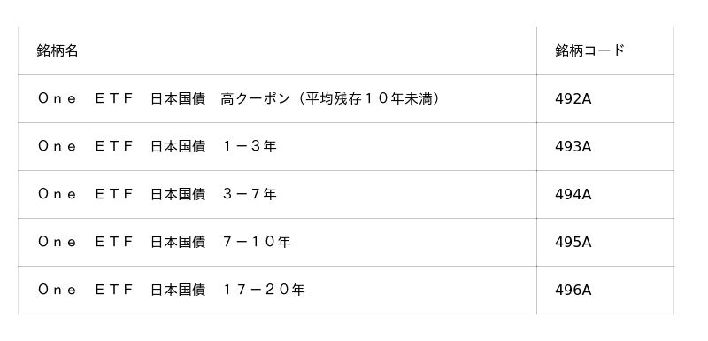 <2026年1月20日上場のOne ETFラインナップ>