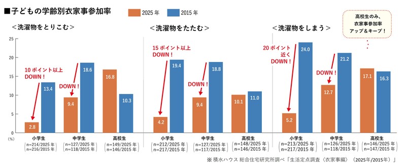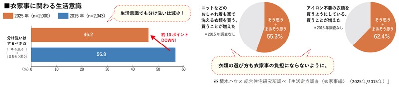 ・引用元が「積水ハウス株式会社 総合住宅研究所」による調査である旨と、引用元調査「生活定点調査〈衣家事編〉(2025年/2015年)」の記載をお願いします。