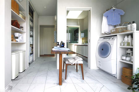 家族人数が多く洗濯頻度の高いご家庭こそ、明るい陽射しの入る空間への設置を検討してみませんか。理想としては、窓の近くや屋外への出入りが可能な「衣家事専用室」を設けること。専用室なら、時間や音、視線を気にせずに洗濯や室内干しがしやすく、衣類収納も備えれば「洗う・干す・しまう」の最短動線が完成します。
