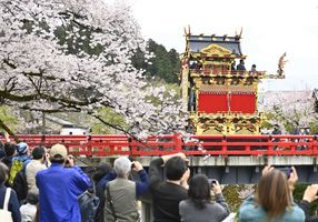 3年ぶり屋台巡行、春の高山祭2日目 満開の桜と豪華共演、岐阜