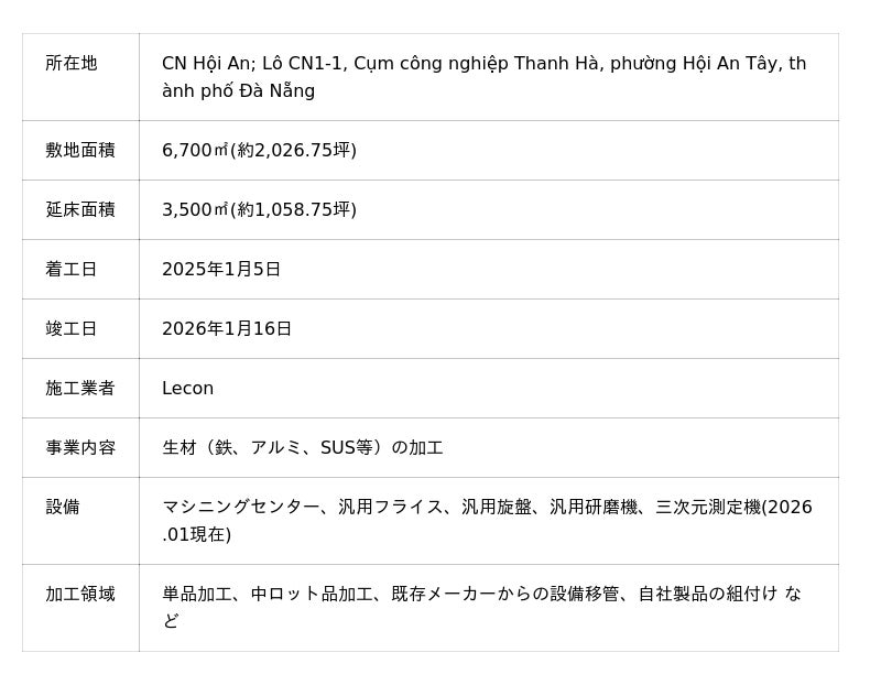 大野精工株式会社(本社:愛知県西尾市、代表取締役社長:大野龍太郎)はベトナムに2拠点目となるホイアン工場を2026年1月16日に竣工いたしました。