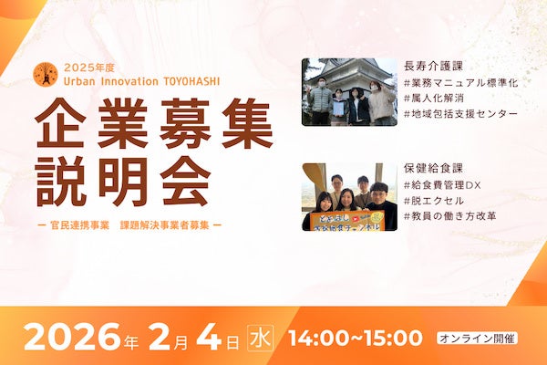 アーバン・イノベーション・ジャパン(UIJ)(事務局:特定非営利活動法人コミュニティリンク/兵庫県神戸市 代表:中西雅幸)は、豊橋市(愛知県)が取り組む協働実証2課題を公開し、スタートアップなど参加企業の募集を開始しました(https://urban-innovation-japan.com/city/toyohashi-city/)。2月15日(日)に応募受付を終了し、3月下旬には採択事業者を決定、4月~8月末を協働期間とする予定です。実証プロジェクト経費の支払限度額は1件あたり50万円(税込み)。