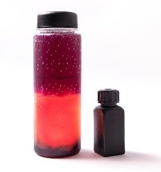 アセロラソーダにその妖しいフェロモンをイメージしたすみれ色のシロップをご自身で注いで完成させ、この夜に乾杯を。