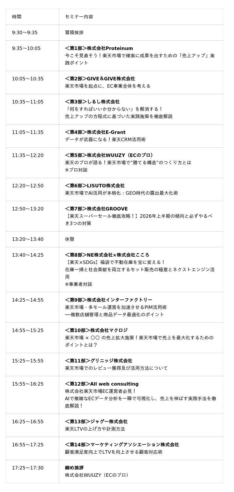 ⏰セミナースケジュール及び内容