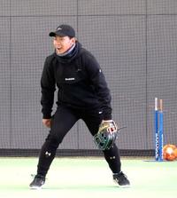 昨季は自己最多の105試合に出場し、投手陣をけん引して日本一に貢献した海野隆司捕手は課題の打撃力を強化中。