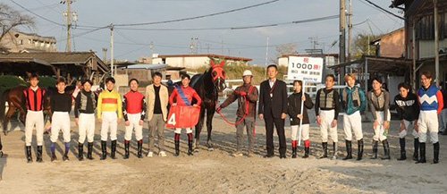 田口調教師は管理するヒストリーメイカー(筒井勇介騎手)で地方競馬通算1000勝を達成した