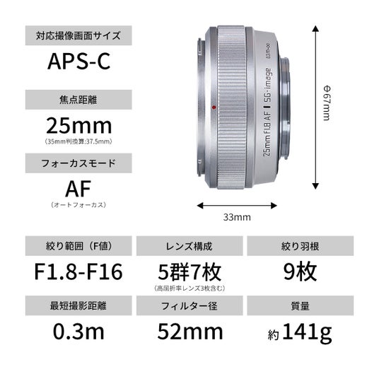 【SG-image AF 25mm F1.8 Silver Limited 販売ページ 】