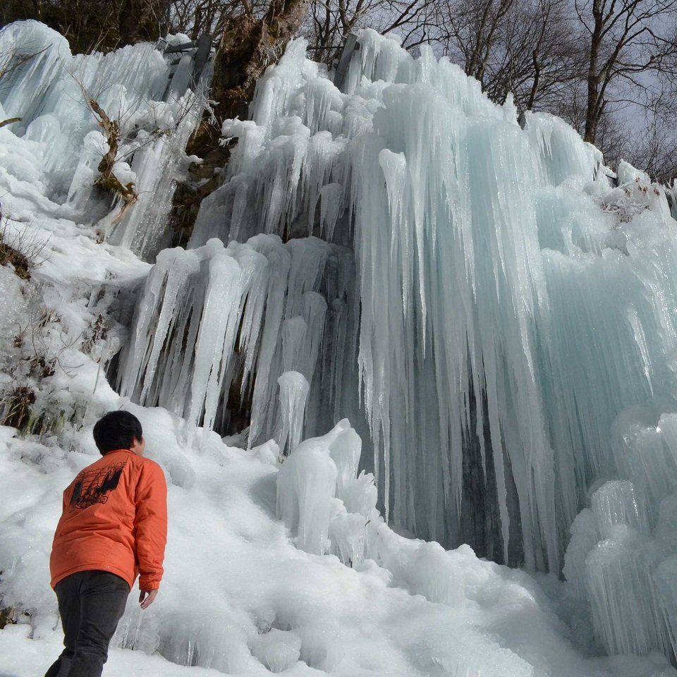岐阜県高山市丹生川町日面の飛騨大鍾乳洞で、いてつく寒さを利用して造る「氷の渓谷」がお目見えし、観光客の目を引いている。巨大な氷柱がつらら状に伸び、青白く神秘的な雰囲気を醸し出している。