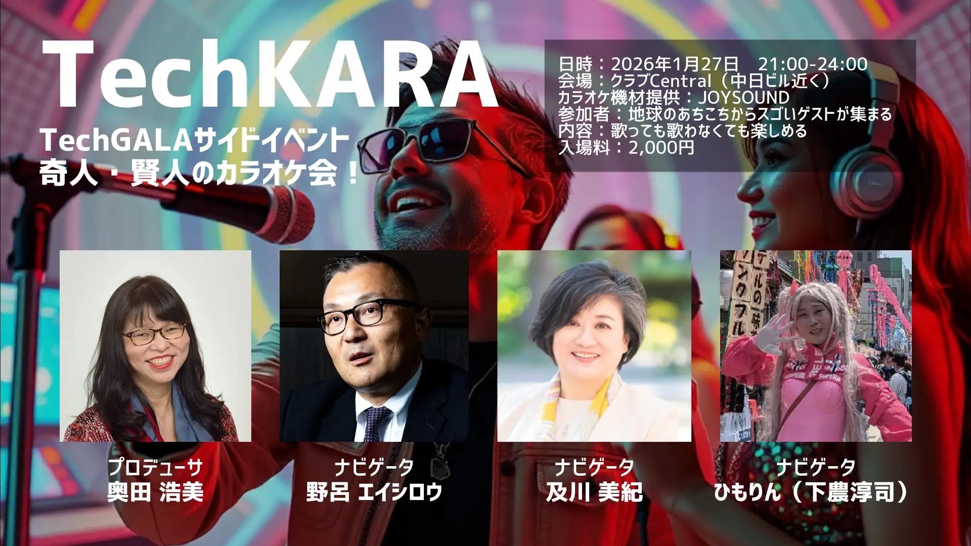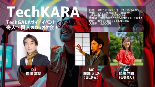 TechGALAのサイドイベントとして2026年1月27日・28日の2日間開催。本イベントは、TechGALA本編で生まれた新しい出会いやコミュニケーションを、音楽とカラオケの力を通じてさらに深化させる「究極のネットワーキング・プラットフォーム」です。