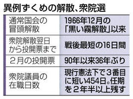 異例ずくめの解散 戦後最短 投開票まで16日間 通常国会の冒頭は60年ぶり 2026年1月24日 05:00 今回の解散、衆院選は異例ずくめと... 残り505文字(全文:522文字) この記事をお読みいただくには「デジタルプラン」または「宅配+デジタルプラン」の会員登録が必要です。無料会員の方はログインしてマイページからコース変更してください。デジタルプランまたは宅配+デジタルプランをご登録中の方はログインしてください。 岐阜新聞デジタル会員に登録すると 無料会員向け記事が読める ニュースレターで最新情報が受け取れる デジタルプラン、宅配+デジタルプランなら Webオリジナルコンテンツが読める 紙面ビューアが読める チケットの先行発売に参加できる お得なクーポンが使える 新規登録ページ ログインページ トップ 岐阜のニュース 異例ずくめの解散 戦後最短 投開票まで16日間 通常国会の冒頭は60年ぶり 関連記事 東大院教授 収賄疑い 警視庁逮捕 180万円分接待か 話の港 山梨・扇山の山林火災鎮圧 県内大雪、交通に影響 きょうも広範囲で降雪か 東海北陸道で4台絡む事故 白川村、けが人なし 男性刺殺疑い、男逮捕 姫路のマンション 石川で確保 おすすめ記事 名神高速や国道21号、25日未明から予防的通行止め 大雪の影響〈25日未明更新〉 岐阜県内大雪、25日昼前にかけ警戒〈24日夕更新〉 東海北陸道と国道156号の通行止め解除【情報更新】 竹かご、かさ、みの・・・飛騨の名品並ぶ 高山市で二十四日市