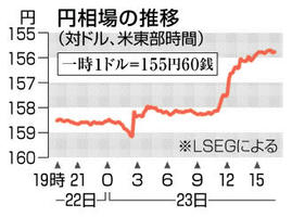 円一時155円台 2円超の急騰 日米協調介入を警戒 2026年1月25日 05:00 【ニューヨーク、ワシントン共同=... 残り851文字(全文:868文字) この記事をお読みいただくには「デジタルプラン」または「宅配+デジタルプラン」の会員登録が必要です。無料会員の方はログインしてマイページからコース変更してください。デジタルプランまたは宅配+デジタルプランをご登録中の方はログインしてください。 岐阜新聞デジタル会員に登録すると 無料会員向け記事が読める ニュースレターで最新情報が受け取れる デジタルプラン、宅配+デジタルプランなら Webオリジナルコンテンツが読める 紙面ビューアが読める チケットの先行発売に参加できる お得なクーポンが使える 新規登録ページ ログインページ トップ 岐阜のニュース 円一時155円台 2円超の急騰 日米協調介入を警戒 関連記事 60年に1度の丙午…迷信、今は昔 岐阜県内の「前回」1966年生まれ「楽しい人生」 トイレトレーラー、安八町が導入 災害時、避難所の衛生環境改善へ フィギュアスケート 四大陸選手権 24歳青木、初出場V 女子 スピードスケート W杯最終戦 高木1500種目別V スピードスケート 五輪代表の吉田 小学生大会参加 1000、調整の一環 スケルトン 高橋五輪代表 2大会ぶり3度目 おすすめ記事 岐阜市長選告示 現職と新人の戦い、第一声(立候補者確定) 市議補選も告示 【速報】美濃加茂市議補選、当選者決まる 岐阜県内、白川村や郡上市で1メートル超える積雪〈25日夕更新〉 村瀬心椛2大会ぶり優勝 冬季Xゲームのスノーボード・女子ビッグエア、超大技成功