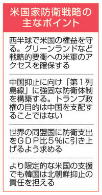 米、同盟国に防衛費増要求 国防戦略公表、西半球重視 中国抑止へ体制構築 2026年1月25日 05:00 【ワシントン共同=関翔平、大熊雄... 残り702文字(全文:719文字) この記事をお読みいただくには「デジタルプラン」または「宅配+デジタルプラン」の会員登録が必要です。無料会員の方はログインしてマイページからコース変更してください。デジタルプランまたは宅配+デジタルプランをご登録中の方はログインしてください。 岐阜新聞デジタル会員に登録すると 無料会員向け記事が読める ニュースレターで最新情報が受け取れる デジタルプラン、宅配+デジタルプランなら Webオリジナルコンテンツが読める 紙面ビューアが読める チケットの先行発売に参加できる お得なクーポンが使える 新規登録ページ ログインページ トップ 岐阜のニュース 米、同盟国に防衛費増要求 国防戦略公表、西半球重視 中国抑止へ体制構築 関連記事 60年に1度の丙午…迷信、今は昔 岐阜県内の「前回」1966年生まれ「楽しい人生」 トイレトレーラー、安八町が導入 災害時、避難所の衛生環境改善へ フィギュアスケート 四大陸選手権 24歳青木、初出場V 女子 スピードスケート W杯最終戦 高木1500種目別V スピードスケート 五輪代表の吉田 小学生大会参加 1000、調整の一環 スケルトン 高橋五輪代表 2大会ぶり3度目 おすすめ記事 岐阜市長選告示 現職と新人の戦い、第一声(立候補者確定) 市議補選も告示 【速報】美濃加茂市議補選、当選者決まる 岐阜県内、白川村や郡上市で1メートル超える積雪〈25日夕更新〉 村瀬心椛2大会ぶり優勝 冬季Xゲームのスノーボード・女子ビッグエア、超大技成功