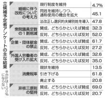 衆院選2026 アンケート 定数削減反対52% 立候補予定者 夫婦別姓「導入」47% 2026年1月26日 05:00 共同通信社は第51回衆院選の立候... 残り962文字(全文:979文字) この記事をお読みいただくには「デジタルプラン」または「宅配+デジタルプラン」の会員登録が必要です。無料会員の方はログインしてマイページからコース変更してください。デジタルプランまたは宅配+デジタルプランをご登録中の方はログインしてください。 岐阜新聞デジタル会員に登録すると 無料会員向け記事が読める ニュースレターで最新情報が受け取れる デジタルプラン、宅配+デジタルプランなら Webオリジナルコンテンツが読める 紙面ビューアが読める チケットの先行発売に参加できる お得なクーポンが使える 新規登録ページ ログインページ トップ 岐阜のニュース 衆院選2026 アンケート 定数削減反対52% 立候補予定者 夫婦別姓「導入」47% 関連記事 194キロ事故遺族上告求め書面 「過失」判決不当訴え 新千歳、雪で7000人が一夜 札幌は最多降雪量 特急列車内で車掌切り付け 高知、傷害容疑63歳逮捕 暴行元警官2人有罪 スカウト捜索中「信頼損なう」 大阪地裁 教授部下ら書類送検 東大院 研究巡り贈収賄容疑 広域強盗幹部、一部否認 藤田被告 「凶器使用指示せず」 初公判 おすすめ記事 岐阜市の進学校は校則も学び方も生徒が決める! 「自由」を最優先、文理編成も3年生から 【ぎふ高校研究】 長良や加納など高倍率に 県内公立高校への進路希望状況【全校の一覧】 FC岐阜「百年構想リーグ」で下克上! 江崎知事に石丸監督らが飛躍誓う 「にしみのライナー」全便がパレットピアおおの発着に 名阪近鉄バス、4月から本格運行移行
