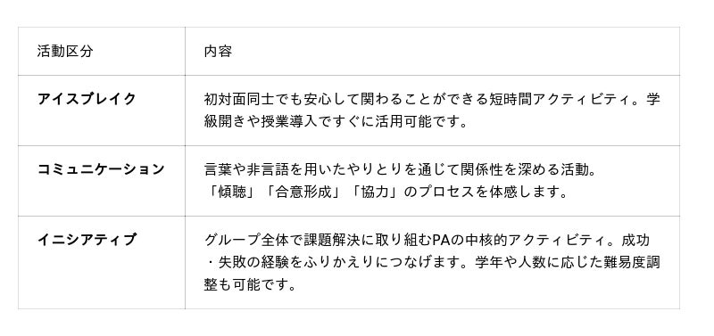 児童生徒を対象にしたPAプログラム(1日)のダイジェスト版を体験いただけます。
