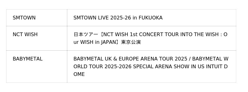 ●SMTOWN:『SMTOWN LIVE 2025-26 in FUKUOKA』