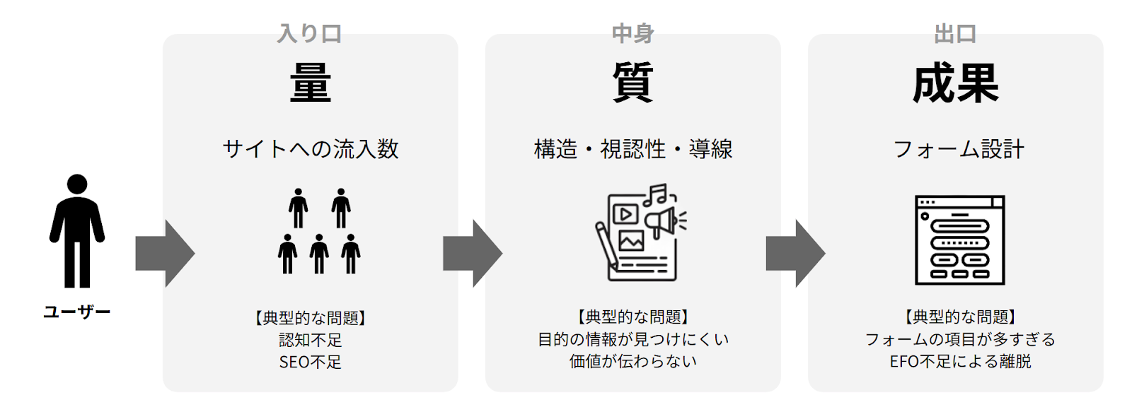 具体的な問題点を知ることで、コンバージョン率を高めることが可能です。