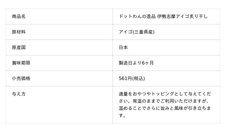 「ドットわんの逸品 伊勢志摩アイゴ炙り干し」パッケージ画像