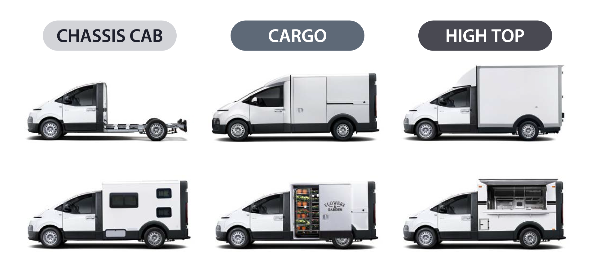 都市物流や業務用途に最適化されたPBV(Purpose-Built Vehicle:目的特化型車両)として、Hyundaiが2024年4月から韓国において販売を開始したモデルです。特徴1:100%電動駆動による高効率・低ランニングコスト