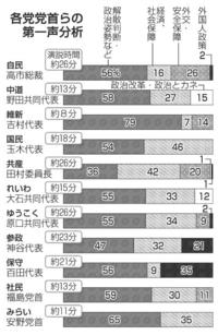「消費税減税」「首相を選択」 与野党党首が第一声 2026年1月28日 05:00 チームみらい 安野貴博党首=東京・渋谷 社民党 福島瑞穂党首=東京・新宿 日本保守党 百田尚樹代表=東京・新橋 参政党 神谷宗幣代表=東京・丸の内 減税日本・ゆうこく連合 原口一博共同代表=佐賀市 れいわ新選組 大石晃子共同代表=大阪市 共産党 田村智子委員長=東京・池袋 国民民主党 玉木雄一郎代表=東京・新橋 日本維新の会 吉村洋文代表=東京・秋葉原 中道改革連合 野田佳彦共同代表=青森県弘前市 自民党 高市早苗総裁=東京・秋葉原 衆院選が公示された27日、与野党... 残り975文字(全文:992文字) この記事をお読みいただくには「デジタルプラン」または「宅配+デジタルプラン」の会員登録が必要です。無料会員の方はログインしてマイページからコース変更してください。デジタルプランまたは宅配+デジタルプランをご登録中の方はログインしてください。 岐阜新聞デジタル会員に登録すると 無料会員向け記事が読める ニュースレターで最新情報が受け取れる デジタルプラン、宅配+デジタルプランなら Webオリジナルコンテンツが読める 紙面ビューアが読める チケットの先行発売に参加できる お得なクーポンが使える 新規登録ページ ログインページ トップ 岐阜のニュース 「消費税減税」「首相を選択」 与野党党首が第一声 関連記事 衆院選、岐阜県内20候補の第一声AI分析 際立つ「高市」 衆院選公示「岐阜に活力」実現私が 真冬の決戦、候補者熱く テニス 全豪オープン サバレンカ4強 テニス 川西・渡辺組 準々決勝進出 ジュニア きょうのスポーツ ◇卓球 新日本スポーツ連盟第11回東海オープン県個人リーグ戦 おすすめ記事 岐阜1区、郵政選挙でも民主旋風でも崩れず 過去7回の衆院選データを読み解く 岐阜県内、29日夜から大雪の恐れ 八百津町の人形店、ひな人形仕上げ最盛期 大河ドラマ「豊臣兄弟!」、3月に岐阜県庁でトークライブ 仲野太賀さん、白石聖さんがゲスト