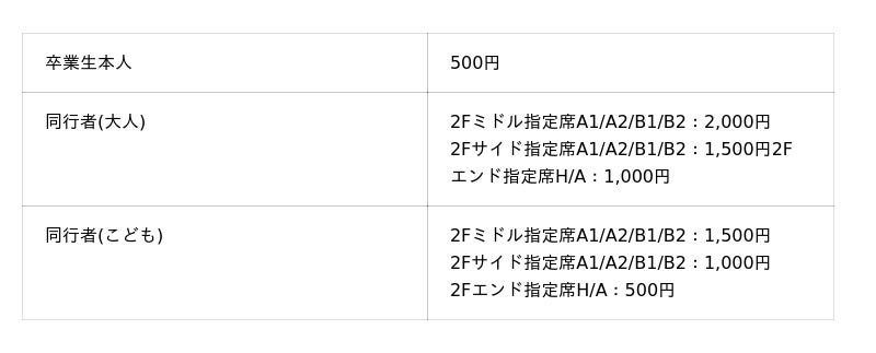 - 2Fミドル指定席A1/A2/B1/B2- 2Fサイド指定席A1/A2/B1/B2
