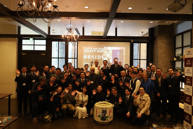 参加者からは「想像以上に上質な仕上がり」「日本酒の知見が活かされているのが感じられる」「自分たちのバーでもぜひ試してみたい」といったコメントが相次ぎました。イベント終了後は、菊正宗酒造担当者や西田稔氏を囲んで、「BESIDE」のボトルを手に笑顔で記念撮影が行われました。