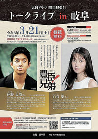 大河「豊臣兄弟!」主演 仲野太賀さんら県庁で3月トーク 2026年1月29日 05:00 大河ドラマ「豊臣兄弟!」トークライブin岐阜のチラシ(県提供) NHK大河ドラマ「豊臣兄弟!」に... 残り324文字(全文:341文字) この記事をお読みいただくには「デジタルプラン」または「宅配+デジタルプラン」の会員登録が必要です。無料会員の方はログインしてマイページからコース変更してください。デジタルプランまたは宅配+デジタルプランをご登録中の方はログインしてください。 岐阜新聞デジタル会員に登録すると 無料会員向け記事が読める ニュースレターで最新情報が受け取れる デジタルプラン、宅配+デジタルプランなら Webオリジナルコンテンツが読める 紙面ビューアが読める チケットの先行発売に参加できる お得なクーポンが使える 新規登録ページ ログインページ トップ 岐阜のニュース 大河「豊臣兄弟!」主演 仲野太賀さんら県庁で3月トーク 関連記事 創作そば隔月ペースで開発 定番は「天麩羅と二八蕎麦」【記者オススメ! ギフテン】 期日前投票、衆院選に市長選に市議補選に…一度にできる? 入場券届かず/国民審査はまだ…有権者混乱 ◇バスケットボール りそなBリーグ1部 ◇水泳 2026ミナモオープンマスターズ競技大会 建て替えの秩父宮ラグビー場 三井住友FGが命名権 バスケットボール きょうBリーグ初のドラフト おすすめ記事 岐阜の野球独立リーグ球団、トライアウトやチームの展望発表 準備室が記者会見 岐阜2区、保守王国の象徴? 過去7回の衆院選データを読み解く 候補者の政党名を間違えて掲示 瑞浪市の期日前投票所、衆院選小選挙区 橋の欄干に車衝突、助手席の妻死亡 中津川の市道、運転の男性も搬送