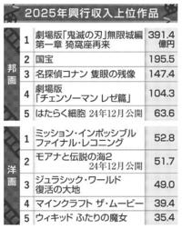 映画興収2744億円最高 25年 鬼滅や国宝けん引 2026年1月29日 05:00 日本映画製作者連盟(映連)は28... 残り529文字(全文:546文字) この記事をお読みいただくには「デジタルプラン」または「宅配+デジタルプラン」の会員登録が必要です。無料会員の方はログインしてマイページからコース変更してください。デジタルプランまたは宅配+デジタルプランをご登録中の方はログインしてください。 岐阜新聞デジタル会員に登録すると 無料会員向け記事が読める ニュースレターで最新情報が受け取れる デジタルプラン、宅配+デジタルプランなら Webオリジナルコンテンツが読める 紙面ビューアが読める チケットの先行発売に参加できる お得なクーポンが使える 新規登録ページ ログインページ トップ 岐阜のニュース 映画興収2744億円最高 25年 鬼滅や国宝けん引 関連記事 創作そば隔月ペースで開発 定番は「天麩羅と二八蕎麦」【記者オススメ! ギフテン】 期日前投票、衆院選に市長選に市議補選に…一度にできる? 入場券届かず/国民審査はまだ…有権者混乱 ◇バスケットボール りそなBリーグ1部 ◇水泳 2026ミナモオープンマスターズ競技大会 建て替えの秩父宮ラグビー場 三井住友FGが命名権 バスケットボール きょうBリーグ初のドラフト おすすめ記事 岐阜の野球独立リーグ球団、トライアウトやチームの展望発表 準備室が記者会見 岐阜2区、保守王国の象徴? 過去7回の衆院選データを読み解く 候補者の政党名を間違えて掲示 瑞浪市の期日前投票所、衆院選小選挙区 橋の欄干に車衝突、助手席の妻死亡 中津川の市道、運転の男性も搬送
