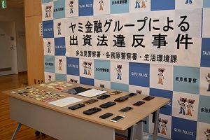 ヤミ金融の疑い、岐阜県警が2人逮捕 東海地区で600人以上に貸し付けか 事件・事故 2026年1月29日 20:40 押収されたスマホや通帳など=29日午後、多治見署 県警生活環境課と多治見署、各務原... 残り517文字(全文:534文字) この記事をお読みいただくには「デジタルプラン」または「宅配+デジタルプラン」の会員登録が必要です。無料会員の方はログインしてマイページからコース変更してください。デジタルプランまたは宅配+デジタルプランをご登録中の方はログインしてください。 岐阜新聞デジタル会員に登録すると 無料会員向け記事が読める ニュースレターで最新情報が受け取れる デジタルプラン、宅配+デジタルプランなら Webオリジナルコンテンツが読める 紙面ビューアが読める チケットの先行発売に参加できる お得なクーポンが使える 新規登録ページ ログインページ トップ 岐阜のニュース 事件・事故 ヤミ金融の疑い、岐阜県警が2人逮捕 東海地区で600人以上に貸し付けか 関連記事 橋の欄干に車衝突、助手席の妻死亡 中津川の市道、運転の男性も搬送 中津川市で住宅焼く けが人なし アパート放火 懲役13年 岐阜地裁判決 2人死亡「重大」 列車にはねられ男性死亡 岐南町の名鉄線踏切 笠松町で民家火災 不審者情報を地図で表示 【安全・安心マップ】 クマ目撃情報も おすすめ記事 岐阜の野球独立リーグ球団、トライアウトやチームの展望発表 準備室が記者会見 岐阜2区、保守王国の象徴? 過去7回の衆院選データを読み解く 候補者の政党名を間違えて掲示 瑞浪市の期日前投票所、衆院選小選挙区 橋の欄干に車衝突、助手席の妻死亡 中津川の市道、運転の男性も搬送