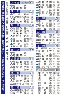 選抜高校野球、出場校きょう決定 大垣日大、吉報待つ 高校野球 スポーツ 2026年1月30日 09:00 第98回選抜高校野球大会(3月19日開幕・甲子園)の出場32校を決める選考委員会は30日、大阪市内で開催される。 一般選考では30校を選出。... 全文:502文字 この記事をお読みいただくには「デジタルプラン」または「宅配+デジタルプラン」の会員登録が必要です。無料会員の方はログインしてマイページからコース変更してください。デジタルプランまたは宅配+デジタルプランをご登録中の方はログインしてください。 岐阜新聞デジタル会員に登録すると 無料会員向け記事が読める ニュースレターで最新情報が受け取れる デジタルプラン、宅配+デジタルプランなら Webオリジナルコンテンツが読める 紙面ビューアが読める チケットの先行発売に参加できる お得なクーポンが使える 新規登録ページ ログインページ トップ 岐阜のニュース 高校野球 選抜高校野球、出場校きょう決定 大垣日大、吉報待つ 関連記事 プロに指名される投手を育てるこつは? 投げるより大切な「土台」 田口聖記さん【ぎふ高校野球 名将流儀】 鍛治舎巧さん「No.1への道」 メンタルトレーニング~百折不撓の心を創る~〈習熟期(3年)〉感情のコントロール ボクシング東海高校新人大会 岐阜県勢は男子3人が優勝 全国高校スケート 恵那農8位 男子2000リレー 全国高校スケート スピード女子3000 阪上(中京)が16位 2028年度のインターハイ、シンボルマークに岐阜各務野高生の作品 おすすめ記事 岐阜県内、路面の凍結に警戒〈30日午前〉 食費高騰、見えぬ終わり 子育て家庭「ここ数年で1.5倍」【課題の現場 ’26ぎふ衆院選】 岐阜3区、比例復活も戦略 自民前職に挑む3候補、票積み上げ模索 高校生4人が行方不明者を捜索、倒れた男性発見「助けないと」 岐阜南署が感謝状