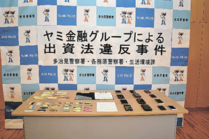 ヤミ金疑い2人逮捕 県警 東海中心に貸し付けか 事件・事故 2026年1月30日 05:00 押収されたスマホや通帳など=29日午後、多治見署 県警生活環境課と多治見署、各務原... 残り517文字(全文:534文字) この記事をお読みいただくには「デジタルプラン」または「宅配+デジタルプラン」の会員登録が必要です。無料会員の方はログインしてマイページからコース変更してください。デジタルプランまたは宅配+デジタルプランをご登録中の方はログインしてください。 岐阜新聞デジタル会員に登録すると 無料会員向け記事が読める ニュースレターで最新情報が受け取れる デジタルプラン、宅配+デジタルプランなら Webオリジナルコンテンツが読める 紙面ビューアが読める チケットの先行発売に参加できる お得なクーポンが使える 新規登録ページ ログインページ トップ 岐阜のニュース 事件・事故 ヤミ金疑い2人逮捕 県警 東海中心に貸し付けか 関連記事 特殊詐欺で540万円被害 瑞浪市の男性会社員 橋の欄干に車衝突、助手席の妻死亡 中津川の市道、運転の男性も搬送 ヤミ金融の疑い、岐阜県警が2人逮捕 東海地区で600人以上に貸し付けか 中津川市で住宅焼く けが人なし アパート放火 懲役13年 岐阜地裁判決 2人死亡「重大」 列車にはねられ男性死亡 岐南町の名鉄線踏切 おすすめ記事 【森嶋ルポ】進化の鍵は「スピード」 大垣日大2年連続センバツ決定 高橋監督率いる新生強豪、甲子園初勝利へ【ぎふ高校野球】 旧ヤナゲン跡地の再開発、2030年の完成目指す 大垣駅南前地区、組合の設立総会 柿ようかんの「つちや」、大垣市の本店隣に本社工場 直火生産でおいしさ追求へ 【号外】大垣日大 選抜切符 高校野球、2年連続7度目