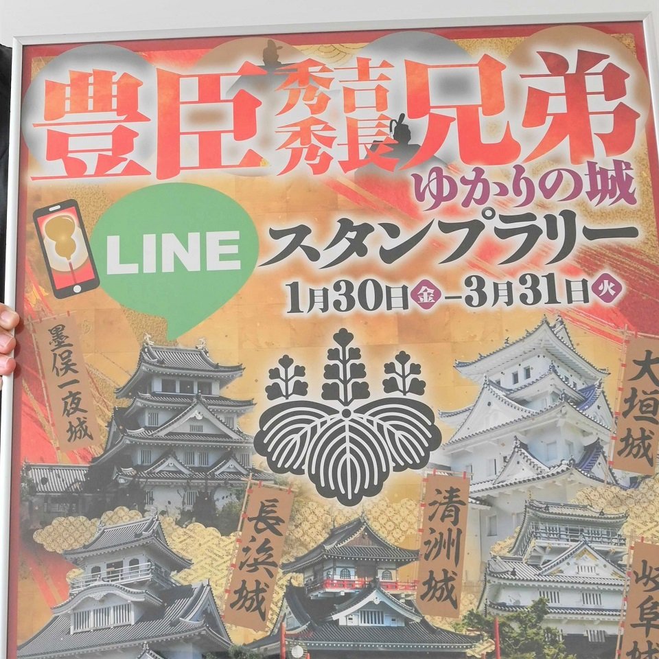 NHK大河ドラマ「豊臣兄弟!」の放送に合わせ、大垣観光協会は30日から、県内外5カ所の城を巡るスタンプラリーを開催する。全ての城を踏破すると、オリジナルデザインのデジタル御城印が手に入る。3月31日まで。