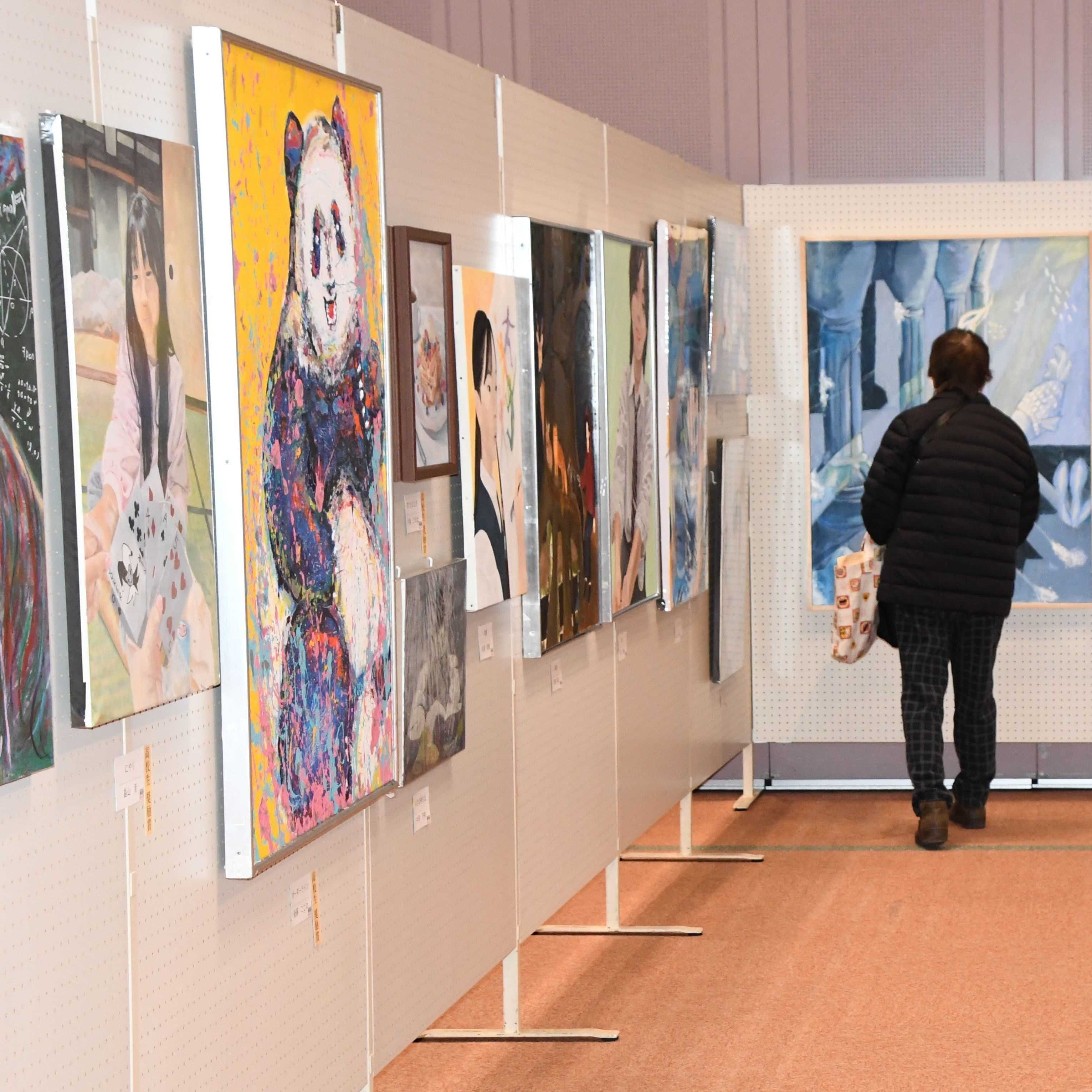 第55回各務原市美術展は、同市那加桜町の市産業文化センターで開かれている。2月1日まで。より幅広い世代の作品を見てもらおうと、今回から一般の部と高校生の部を一本化して実施。