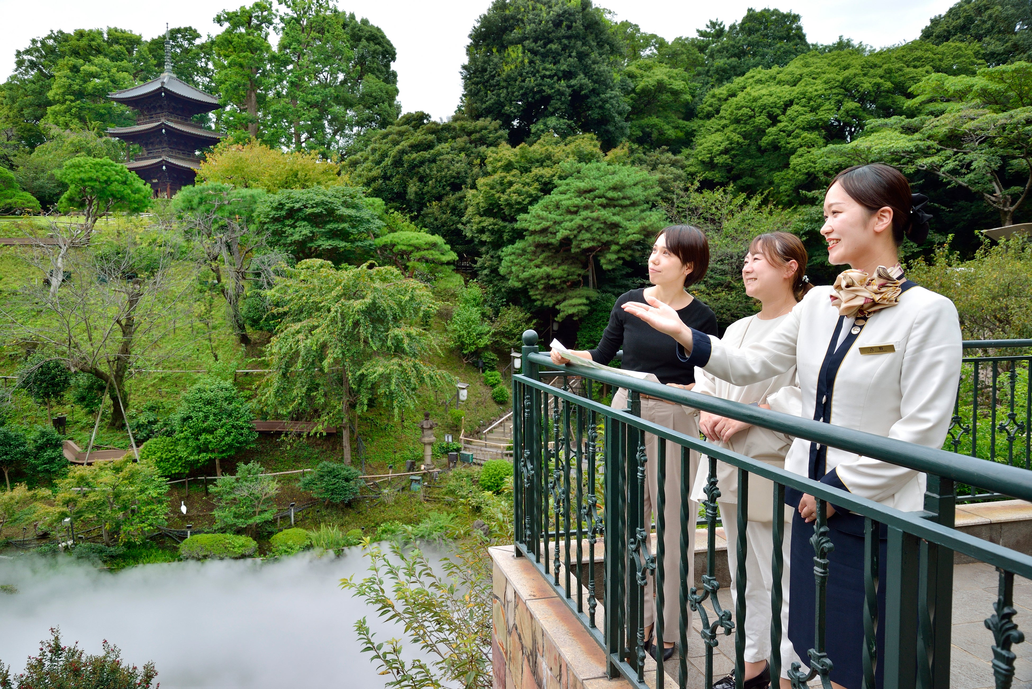 ガーデンツアーでは、ホテルスタッフが庭園の歴史や史跡、三重塔、「東京雲海」をはじめとする季節の演出、さらにはグッドデザイン賞受賞に至る背景などをご紹介しながら、庭園内をご案内します。日本語・英語の両言語で実施することで、国内外のお客様に向けて、日本庭園が持つ文化的価値をわかりやすくお伝えします。