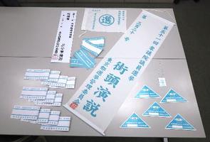 都選管によると、運動員用の腕章や街頭演説用の旗などの七つ道具は、大型選挙のたびに業者に発注し、各陣営に配る。資金力で選挙運動に差が生じないようにするためで、前回衆院選では計約300セットを約1673万円で準備。ただ今回は約945万円で済んだ。