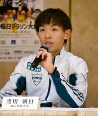 別府大分毎日マラソン(2月1日・大分市高崎山うみたまご前―ジェイリーススタジアム)に出場する招待選手が31日、大分市内で記者会見した。今大会は2028年ロサンゼルス五輪代表選考会「グランドチャンピオンシップ(MGC)」(27年秋)の出場権も懸かり、黒田朝日(青学大)は「MGC出場権を第1目標に持ってくる」と落ち着いた表情で話した。