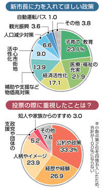 期待する政策「子育て・教育」最多 LRT構想は賛成が上回る 出口調査分析 2026年2月2日 05:00 1日投開票の岐阜市長選で、岐阜新... 残り902文字(全文:919文字) この記事をお読みいただくには「デジタルプラン」または「宅配+デジタルプラン」の会員登録が必要です。無料会員の方はログインしてマイページからコース変更してください。デジタルプランまたは宅配+デジタルプランをご登録中の方はログインしてください。 岐阜新聞デジタル会員に登録すると 無料会員向け記事が読める ニュースレターで最新情報が受け取れる デジタルプラン、宅配+デジタルプランなら Webオリジナルコンテンツが読める 紙面ビューアが読める チケットの先行発売に参加できる お得なクーポンが使える 新規登録ページ ログインページ トップ 岐阜のニュース 期待する政策「子育て・教育」最多 LRT構想は賛成が上回る 出口調査分析 関連記事 投票率6・63ポイント上昇 31・45% 衆院選がプラス要因か 県都共創 集大成へ 岐阜市長3選 柴橋さん「市民の幸せに貢献」 「力不足だった」 大須賀さん敗戦の弁 3歳女児死亡 母が刺したか 警視庁逮捕、男児もけが 落合信彦さん死去 84歳 国際ジャーナリスト 訃報 モーリー・ロバートソンさん おすすめ記事 柴橋さん「市民の幸せに貢献したい」 岐阜市長に3選 決意新た 市街地活性化へ政治手腕発揮を 岐阜市長選・柴橋氏3選【解説記事】 【速報】岐阜市長選、柴橋氏が3選(開票の最終結果など情報更新) 岐阜市議補選、自民新人が当選