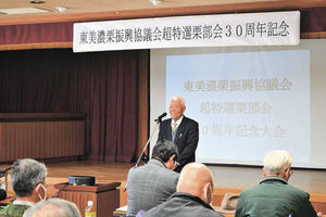 「超特選栗」30周年祝う 中津川市 生産者ら記念大会 2026年2月3日 05:00 超特選栗30周年記念大会であいさつする熊崎隆治部会長=中津川市茄子川、JAひがしみの本店 銘菓「栗きんとん」を手がける菓子... 残り333文字(全文:350文字) この記事をお読みいただくには「デジタルプラン」または「宅配+デジタルプラン」の会員登録が必要です。無料会員の方はログインしてマイページからコース変更してください。デジタルプランまたは宅配+デジタルプランをご登録中の方はログインしてください。 岐阜新聞デジタル会員に登録すると 無料会員向け記事が読める ニュースレターで最新情報が受け取れる デジタルプラン、宅配+デジタルプランなら Webオリジナルコンテンツが読める 紙面ビューアが読める チケットの先行発売に参加できる お得なクーポンが使える 新規登録ページ ログインページ トップ 岐阜のニュース 「超特選栗」30周年祝う 中津川市 生産者ら記念大会 関連記事 肉厚の特産シイタケ「飛騨やまっこ」、色や形を審査 日商簿記1級に中津商高生2人が合格「将来は税理士か公認会計士に」 八百津産ニンジン甘いよ 若手生産者が小学校給食に提供 昨年から栽培、新名物へPR クマの緊急銃猟、東濃で初の実地訓練 中津川市や地元猟友会、冬眠明けに備え 肉牛肥育、県共進会で好成績 中津川市の5人、市長に喜び報告 橋の欄干に車衝突、助手席の妻死亡 中津川の市道、運転の男性も搬送 おすすめ記事 スキーHP・松浦透磨 晴れ舞台かっこよく【ミラノ・コルティナ冬季五輪2026岐阜県勢紹介(2)】 節分、開運や家内安全祈る 飛騨一宮水無神社で節分祭 鍛治舎巧さん「No.1への道」 インテレクチュアルトレーニング~勝つ為の必然を創る~ 岐阜県内終盤情勢 4区中道、自民横一線 5区は自民やや先行【ぎふ衆院選2026】