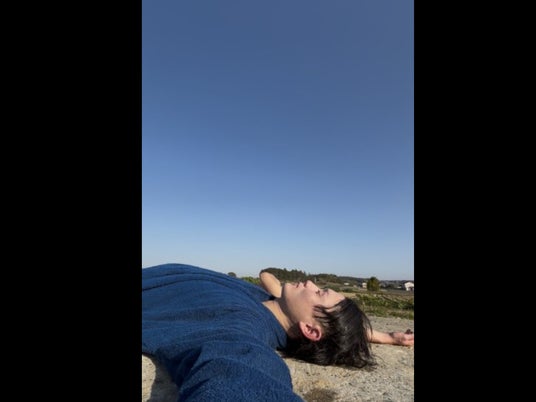▲自宅のサウナで、田原の広大な青空のもと“ととのう”私。ビルに囲まれた東京では決して味わえない、この景色と時間が、田原にはあります。