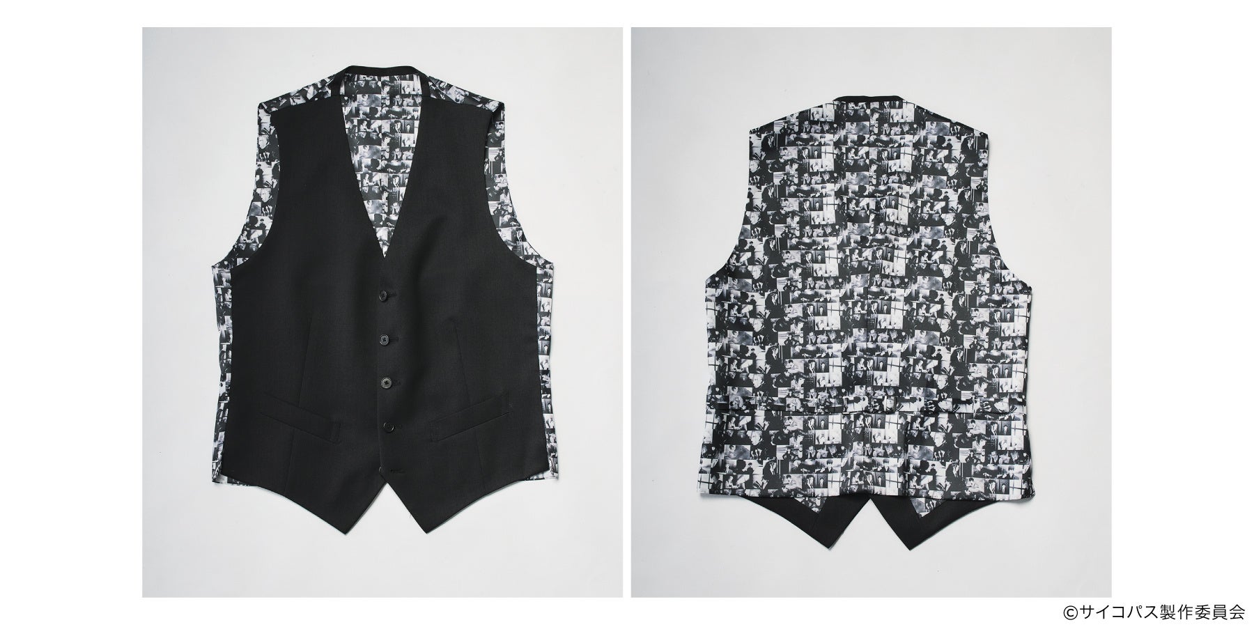 1.「劇場版PSYCHO-PASS PROVIDENCE」の名場面を集めた裏地(モノクロデザイン)を胴裏・袖裏・胸ポケット裏地に使用