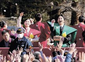 大河ドラマの出演者豆まき 成田山新勝寺節分会 2026年2月4日 05:00 成田山新勝寺の節分会で、豆をまくNHK大河ドラマ「豊臣兄弟!」の仲野太賀さん(右)と白石聖さん=3日午前、千葉県成田市 千葉県成田市の成田山新勝寺で3日... 残り238文字(全文:255文字) この記事をお読みいただくには「デジタルプラン」または「宅配+デジタルプラン」の会員登録が必要です。無料会員の方はログインしてマイページからコース変更してください。デジタルプランまたは宅配+デジタルプランをご登録中の方はログインしてください。 岐阜新聞デジタル会員に登録すると 無料会員向け記事が読める ニュースレターで最新情報が受け取れる デジタルプラン、宅配+デジタルプランなら Webオリジナルコンテンツが読める 紙面ビューアが読める チケットの先行発売に参加できる お得なクーポンが使える 新規登録ページ ログインページ トップ 岐阜のニュース 大河ドラマの出演者豆まき 成田山新勝寺節分会 関連記事 ぎふ衆院選2026 公約 若者に恩恵は? 岐阜大生、候補者の主張を分析 堺市の住宅に溺死体 78歳女性 首など骨折、殺人か 学童クラブでわいせつ疑い 警視庁、保育士逮捕 マネロン役か 邦人を再逮捕 カンボジア拠点詐欺 仮想通貨でマネロンか 県警など 「相対屋」6人逮捕 詐欺疑い 教団解散命令 来月4日判断 東京高裁 おすすめ記事 CoIUってなんやねん!? 飛騨発「謎大学」が日本の地方を変える! 寒暖差の大きい立春…海津市で早咲きの桜が開花 高山市でダイヤモンドダスト観測 氷点下18.5度、今季最低 かべ新聞コンクール、岐阜県図書館で入賞作品を展示