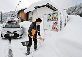 ぎふ衆院選2026 短時間の演説余儀なく 飛騨の舌戦 雪も敵 2026年2月4日 05:00 雪が激しく降る中、候補者に拍手を送る住民ら=1月29日、下呂市萩原町萩原 選挙ポスター掲示板が見えるように除雪する村職員=2日、大野郡白川村飯島 ◆各選管 掲示板除雪「投票率心配」... 残り967文字(全文:984文字) この記事をお読みいただくには「デジタルプラン」または「宅配+デジタルプラン」の会員登録が必要です。無料会員の方はログインしてマイページからコース変更してください。デジタルプランまたは宅配+デジタルプランをご登録中の方はログインしてください。 岐阜新聞デジタル会員に登録すると 無料会員向け記事が読める ニュースレターで最新情報が受け取れる デジタルプラン、宅配+デジタルプランなら Webオリジナルコンテンツが読める 紙面ビューアが読める チケットの先行発売に参加できる お得なクーポンが使える 新規登録ページ ログインページ トップ 岐阜のニュース ぎふ衆院選2026 短時間の演説余儀なく 飛騨の舌戦 雪も敵 関連記事 衆院選投開票日、岐阜県内雪の可能性 期日前投票の活用を 雪で建物倒壊 新潟で相次ぐ 1人死亡、1人意識不明 「デフテック」の西宮容疑者逮捕 マイクロ、大麻所持疑い トラックが特急ひだと事故 運転手を書類送検へ 過失傷害疑い 岡山の教諭5回目逮捕 女児持ち物に体液の疑い 盗撮共有 山上被告が控訴へ 安倍氏銃撃 無期懲役判決不服 おすすめ記事 衆院選投開票日、岐阜県内雪の可能性 期日前投票の活用を 赤鬼が豪快ダイブ、厄落とし 岐阜市の玉性院「つり込み祭り」 意外なおいしさ「五平フィナンシェ」誕生 中央道のSA、中津商高の生徒らが土産物開発 イビデン、3年間で5000億円投資計画 電子事業、河間事業場(大垣市)の生産増強