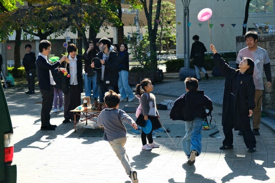 11月の社会実験に引き続き、出張プレーパークを実施します。コマまわしやけん玉などの昔遊び、おままごと、黒板トラックなどが楽しめます!
